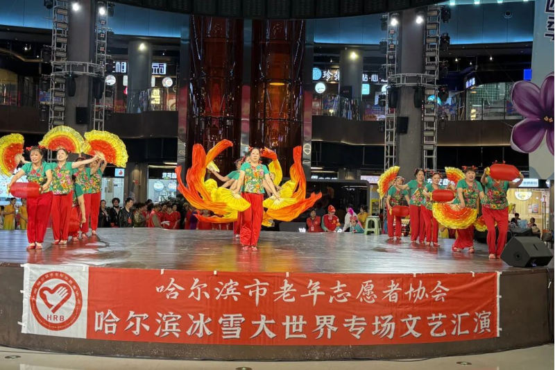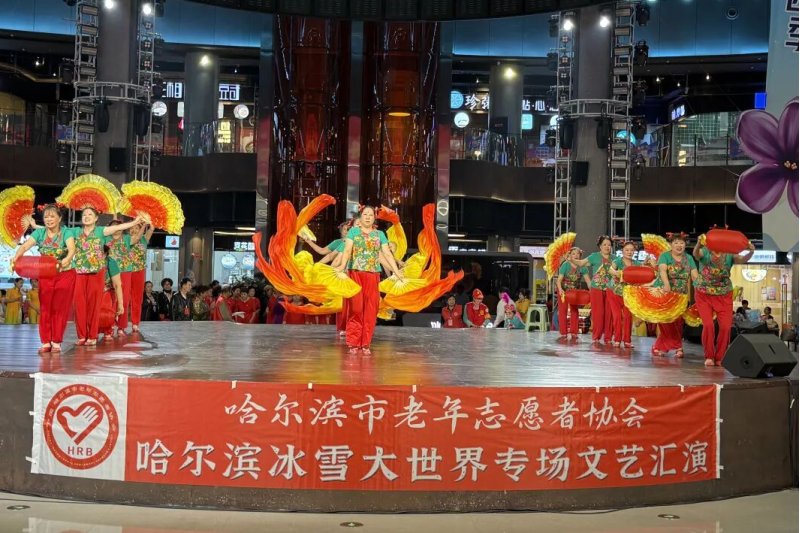 11月28日,两场公益演出在哈尔滨冰雪大世界冰雪美食馆中心舞台上精彩上演,哈尔滨市老年志愿者协会和中央大街社区音乐之都艺术团相继登场,收获了台下观众接连不断的掌声和喝彩声。