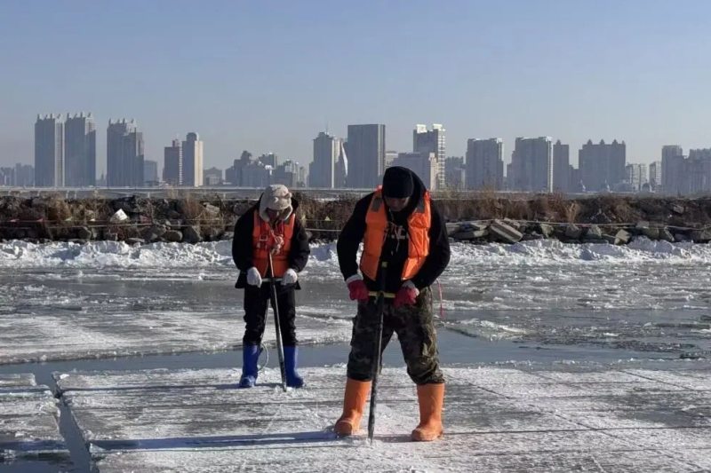 一阵有节奏的撞击声撕破寂静。衣凤龙双手紧握冰镩,高高举起,重重砸下。他是这片冰原之上,最早唤醒松花江的人之一。