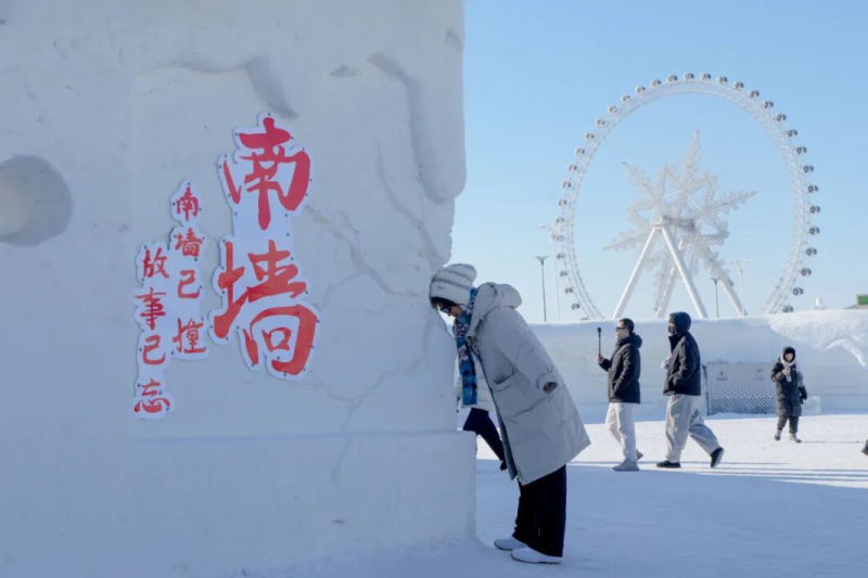 南墙已撞,故事已忘。在第二十七届哈尔滨冰雪大世界园区内,一堵名为“南墙”的雪墙火了。