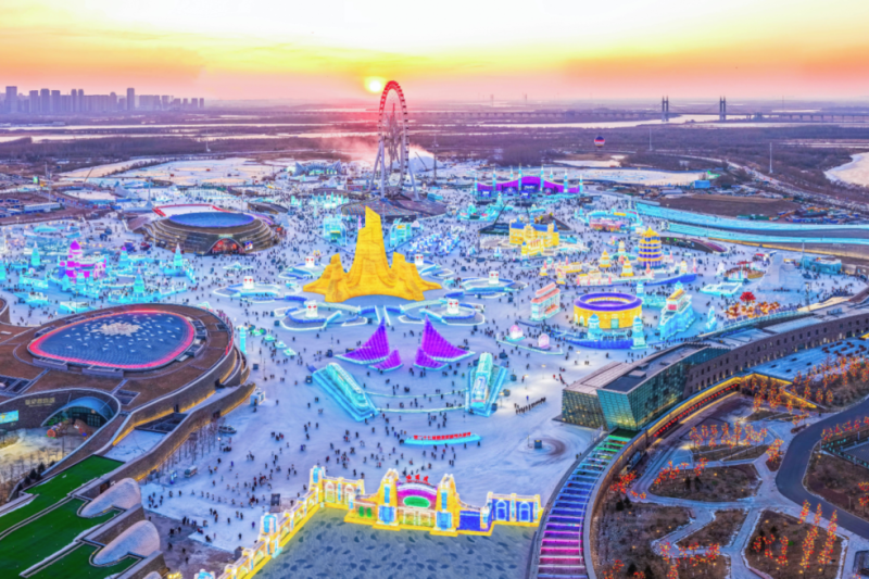 今年冬天,第二十七届哈尔滨冰雪大世界不只铺开了巨大的冰封画卷,更准备了众多趣味十足的沉浸式体验项目,其中园区西侧新增的“冰天雪地大闯关” 与 “趣味冰迷宫”颇受游客追捧。