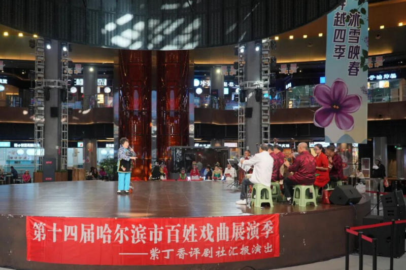 9月7日下午,第十四届哈尔滨市百姓戏曲展演季——紫丁香评剧社汇报演出在哈尔滨冰雪大世界冰雪美食馆中心舞台隆重举行。
