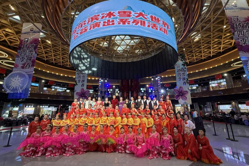 10月12日,哈尔滨冰雪大世界冰雪美食馆暖意融融,两场公益演出在中心舞台精彩上演。