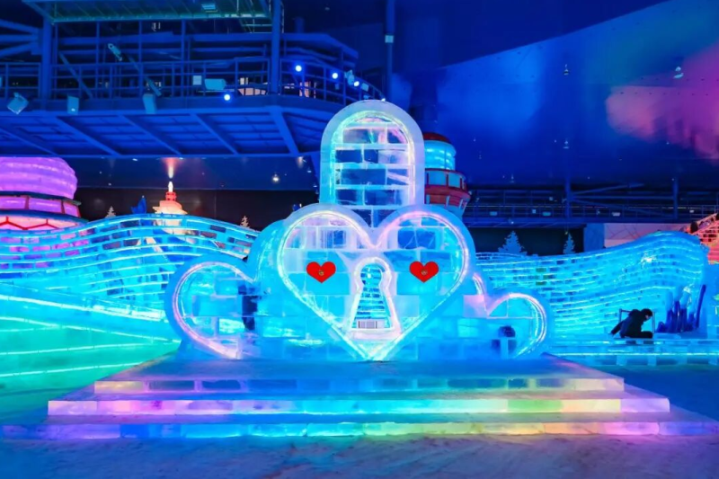 哈尔滨冰雪大世界以匠心打造多系列冰雪文创,发光冰灯系列、“雪韵丁香”火炬塔系列、主塔“冰灯启梦”系列、经典雪人系列、冰城左右哥系列等。