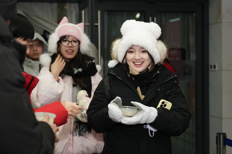 在这个千家万户团圆相守的日子里,哈尔滨冰雪大世界为游客们特别准备了水饺、糖果,用最朴实的关怀,让大家在冰天雪地里度过一个难忘而温暖的除夕夜。