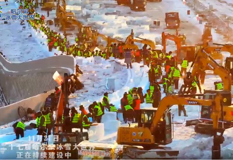 白雪为幕,匠心筑景!#第二十七届哈尔滨冰雪大世界 园区白雪茫茫中建设激情在燃烧,各工种协同作战,一场冰雪奇观正加速赶来!