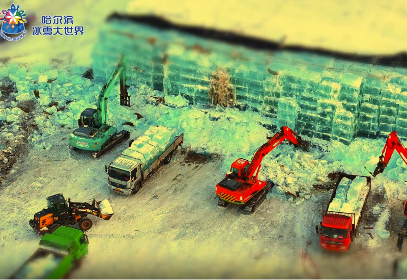 移轴视角下的#第二十七届哈尔滨冰雪大世界 超有趣!微观的冰雪世界,饱满的建设热情,这场冰雪之约值得狠狠期待~